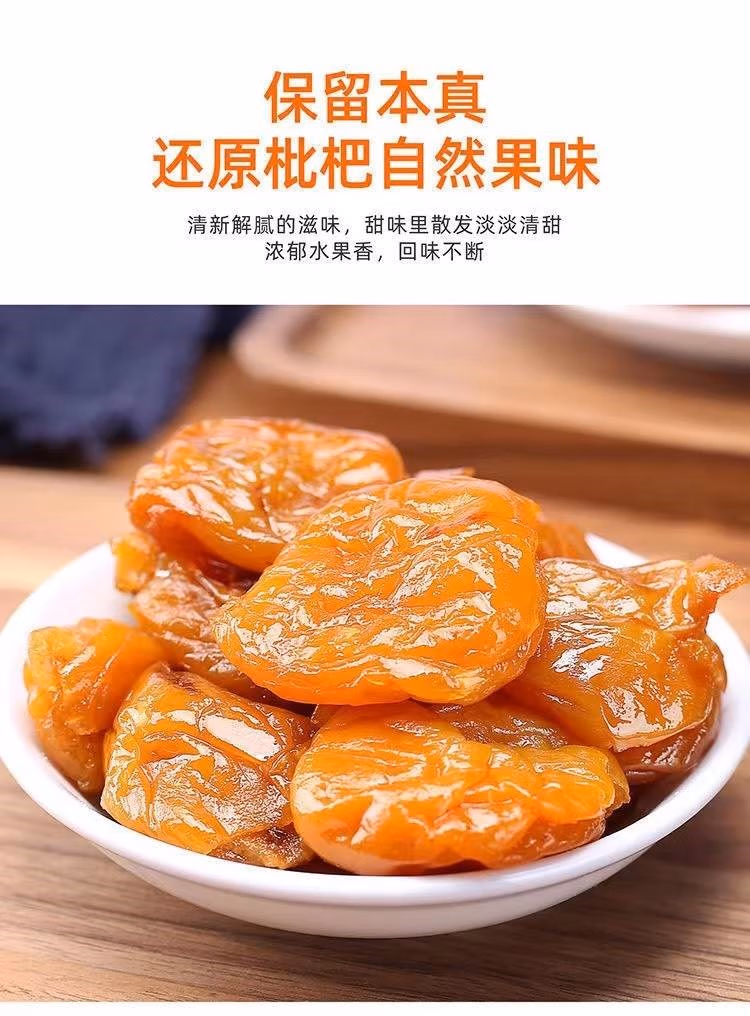 胖东来同款枇杷干原味福建云霄竹盐枇杷干琵琶润喉水果果干果脯 2斤装竹盐枇杷干500g*2罐
